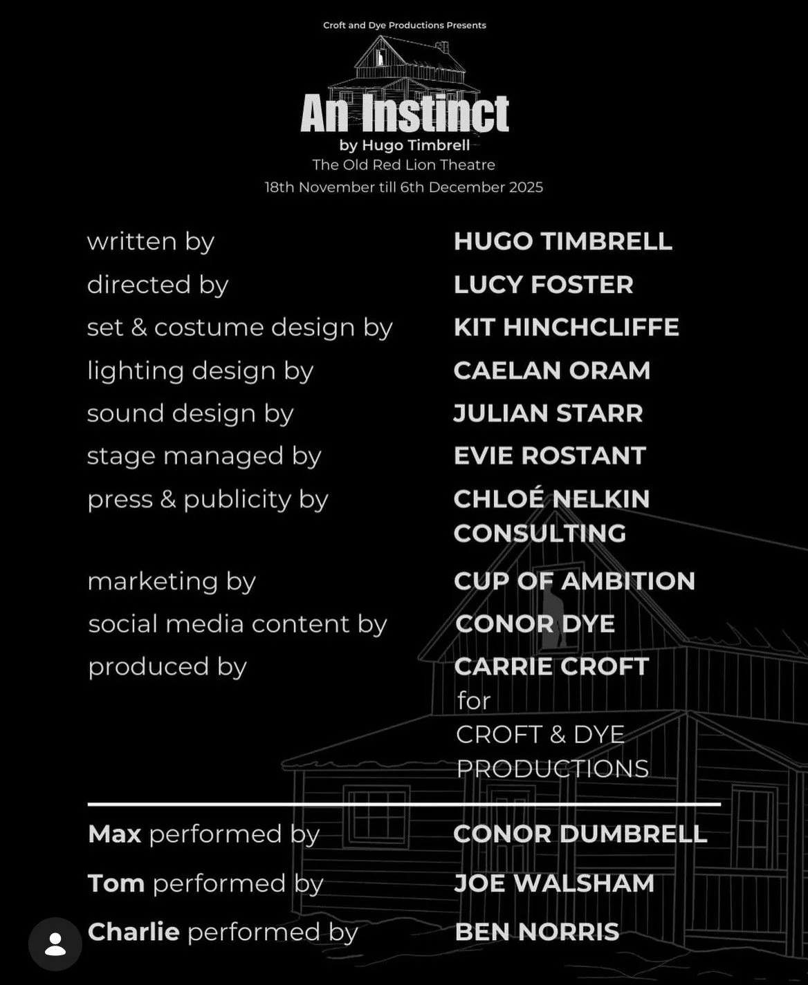 Shortlisted for the Theatre503 International Playwriting Award 2023, AN INSTINCT is a queer thriller about a cabin, a door and, most importantly, an axe. Uniting acclaimed director Lucy Foster (Offie-nominated Best Director) and emerging writer Hugo Timbrell (My Life as a Cowboy), you’re invited to lockdown for a nerve-wracking evening in a cabin in the woods, where working out fact from fiction is a matter of life and death.